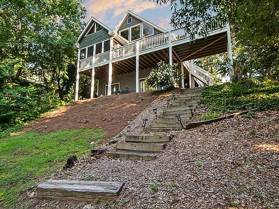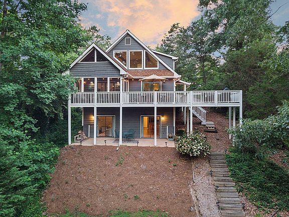 Fabulous lake house with year-round deep water (23’ at dock) situated in a No Wake Cove and close to everything on Lake Lanier! Welcome to your private 3 bed/3 bath lake home retreat with single slip Geo Teck dock with party deck and hoist. Large outside deck with lake view-perfect for entertaining. Enjoy your morning coffee on the deck or in the private screened in porch. There are 3 levels of living once inside. The oversized master suite is upstairs. The main level is open concept living with a family room with stone fireplace, kitchen, dining room and vaulted, wood beamed ceilings. Two secondary bedrooms are on the main level. Downstairs is a second family room with kitchenette, full bath and plenty of options for additional sleeping or recreation space. The downstairs patio has a hook up for a hot tub, if desired. Easy pathway to single slip party dock with a lift, water, electricity and upgraded lighting. Great opportunity for weekend or full-time living on Lake Lanier.