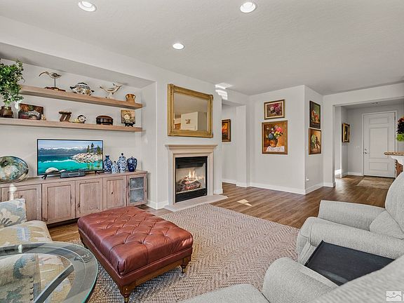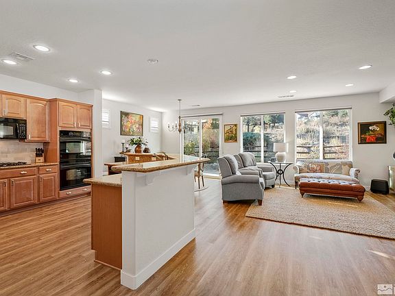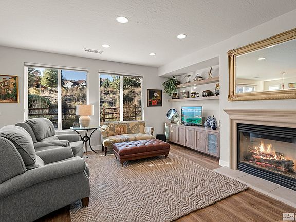 Beautiful Northstar model at the Del Webb Sierra Canyon 55+ community. The home offers an open-floor plan with a generous master suite that includes dual sinks and a large walk-in closet. The sellers are currently using the 2nd bedroom as an office and the den as a second bedroom. Recent improvements include new LVP flooring and 4.5" baseboards at main living areas including the second bedroom, new carpet in master bedroom and den and new tile floors at both baths,, fresh interior paint, new subway tile backsplash at kitchen, new hardware on all cabinets, new lighting over the dining area, floating shelves and cabinet at the great room entertainment nook, both baths have new counters tops, sinks, faucet sets, lighting, mirrors, toilets and cabinet hardward. The extended garage (4 feet) includes cabinets, shelving and workbench. The home offers two outdoor living areas, a lovely courtyard at the front of the home with views of the mountains and a nice backyard where you might catch a glimpse of some wildlife. Sierra Canyon is just 15 minutes to downtown Reno & Reno/Tahoe International Airport, 30 minutes from Tahoe Reno Industrial Center (TRIC), 45 minutes from fabulous outdoor recreational opportunities in North Lake Tahoe and Truckee. Located in the established Somersett Master-planned community, Del Webb/Sierra Canyon 55+ HOA amenities include 9-hole owner's golf course, 18,000+sf Aspen Lodge clubhouse with gym, indoor pool & walking track, outdoor tennis & pickle ball courts and miles of scenic walking trails. Check out the fantastic Somersett Golf & Country Club restaurant open to the public offering daily specials, open for breakfast, lunch & dinner Tues.-Sun (seasonal outdoor covered patio seating overlooking scenic golf course & offering panoramic mountain views). Other dining options within Somersett include Peavine Tap House Eats & Beats (restaurant & live music venue), Sakana Japanese Restaurant and Gambi's Fine Italian dining. G &G Market is a convenience store located in Somersett Towne Square and offers beer, wines and spirits along with grocery items. Sierra Canyon offers over 50 community activity/hobby groups (Theater, Investment, Wine Club, Skiing, Maj Jonng, etc.). This truly is a special community and a great place to call home!