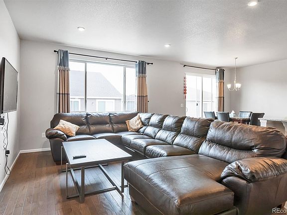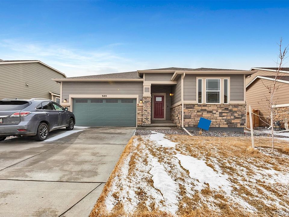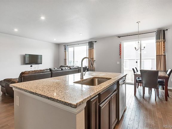 Beautiful move in ready Ranch home in Buffalo Highlands. Open floor plan, beautiful granite center island overlooking great room, upgraded 42" soft close, staggered cabinets, stainless steel appliances, gas stove with double ovens, split floor plan, hardwood flooring upgrades in entry, living room, and kitchen/dining areas. Espresso cabinets, bengal white kitchen countertops, cement carpet, beige colored laminate, and weathered hardwood flooring. Surrounded by growth this community is just a short commute to Downtown Denver and DIA!