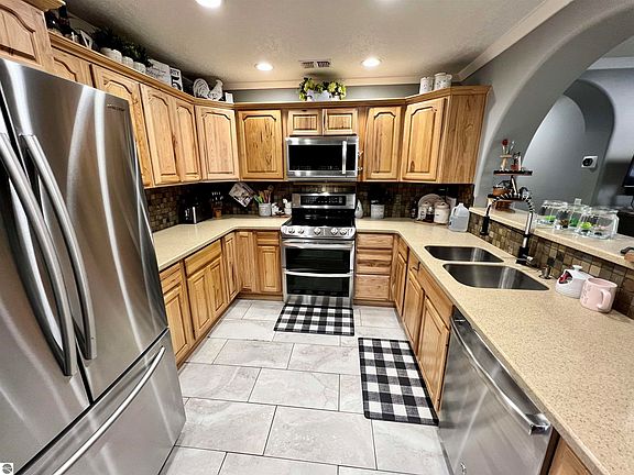 Chip and Joanna Gaines would approve! Updated 3 bedroom 2 bath ranch on just under an acre. Step inside where you'll find premium finishes throughout. The kitchen features hickory cabinets, corian countertops, stainless steel appliances, tile floor, and slate backsplash. The formal dining room has ceramic tile flooring and pantry with a coffee bar. The primary bedroom includes a private bath with dual sinks. Other highlights of this home include- new 6 panel doors, brand new 5 well, 3 year old on-demand hot water heater, Nest Wi-Fi smoke alarms, thermostat, and doorbell. Step outside and you'll see the large fenced backyard, seamless gutters, and 2 car detached garage. Enjoy all this home has to offer in a location that provides natural gas, high-speed internet, and blacktop road with easy access to the freeway.