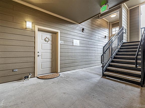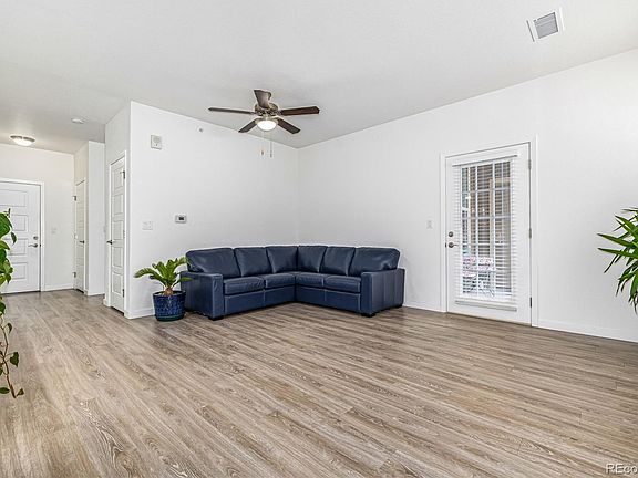 Experience modern living in this sought-after 2-bedroom unit at Prairie Walk On Cherry Creek Condos. This home boasts an inviting open floor plan adorned with stylish wood-look flooring and is wheelchair accessible. The spacious great room is accentuated with a heartwarming fireplace, making it the perfect spot for relaxation. The contemporary kitchen features elegant chocolate-stained cabinets, top-of-the-line stainless steel appliances, polished quartz counters, a handy pantry, and a blend of track and pendant lighting. The center island (10'-x3.5') seamlessly integrates a breakfast bar, ideal for quick meals or social gatherings. The main bedroom is a personal retreat, offering a generous walk-in closet and a private bathroom. Begin your days with a serene moment on your choice of two covered patios, sipping your morning coffee amidst the refreshing outdoors. Enjoy the convenience of parking your vehicle under your personal carport that is just steps away from your front door. The home is located very close to many shopping choices like Costco, King Soopers, and the new Trader Joe's in Parker. For the commuter, you have quick and easy access to E-470 so getting to I-25 or the airport is a breeze. As a resident, indulge in the array of amenities the neighborhood provides: work out at the state-of-the-art fitness center, rejuvenate at the spa, take a dip in the refreshing pool, volleyball court, walking trails, and the Cherry Creek Trail that can take you all the way to Denver. This home is a perfect blend of luxury and comfort. Don't let this opportunity slip away – it's a must-visit!