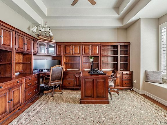 Beautiful, custom ranch on 1.5 acres with serene views! This 6 Bedroom, 6 Bathroom sprawling ranch is updated throughout. Enter through the Foyer to enjoy the Great Room that allows for an abundance of natural light, hard wood floors and built in shelving. The Kitchen is updated with 42" cabinets, range, double oven, two beverage fridges as well as a full sized refrigerator. The kitchen island has eat in space and leads to a hearth space with vaulted ceilings. Soaring ceilings throughout the main floor and a main floor master and study. The Master retreat has been updated with an over sized shower, stand alone tub, over sized walk in closet and his and her vanities. Enjoy your private entrance to the Trex deck with a built in Grill, heat lamps and lounging area to overlook your pool, hot tub and Putting Green! This house has it all. Spirit Ridge is seated on 80 acres of open space located in unincorporated Douglas County - close to the town of Parker, but just far enough away to feel the freedom. Easy access to Parker Rd., Parker amenities and C-470. DIA airport is about 35 minutes.