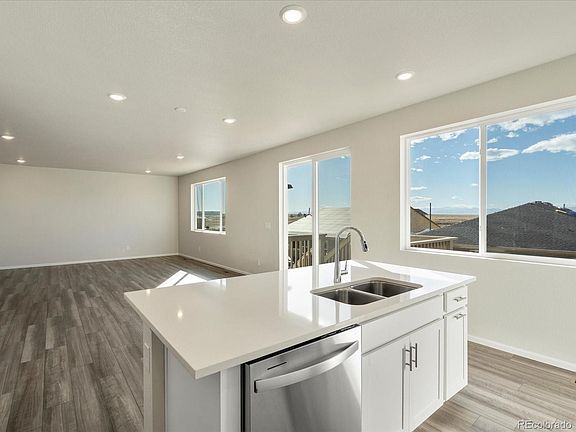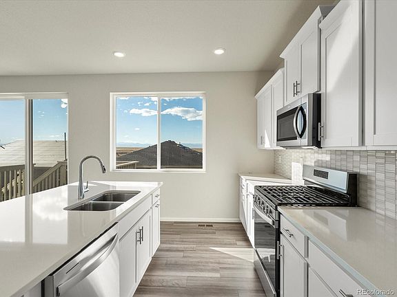Brand new, energy-efficient home ready NOW! Experience the epitome of energy efficiency and modern living in this stunning four-bedroom, 2.5 bath, 2 car garage home. The open-concept home with a flex room, perfect for an office, while the loft upstairs provides additional versatile space. The interior boasts a great room and a beautiful design package, highlighted by elegant white cabinets, herringbone mosaic backsplash and pristine Jazmin white quartz countertops. Upgraded luxury vinyl plank flooring adds a touch of sophistication, complementing a host of other thoughtful smart-home touches and energy efficient upgrades throughout. Centrally located, Buffalo Highlands is a beautiful community in Commerce City. This new phase of single-family homes features five open-concept floorplans to choose from in our LiVE.NOW packages. Nearby the Rocky Mountain Arsenal, with extensive trails and just a short commute to Downtown Denver and DIA. We also build each home with innovative, energy-efficient features that cut down on utility bills so you can afford to do more living.* Each of our homes is built with innovative, energy-efficient features designed to help you enjoy more savings, better health, real comfort and peace of mind. Photos are a Builder home of same floorplan.