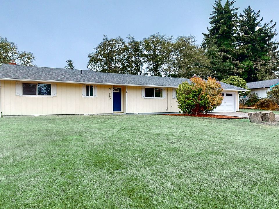 Cozy ranch style home on oversized lot! This 2 bedroom home sits on .23 of an acre with a large back patio and fenced back yard to enjoy. Features light and bright kitchen with lots of counter space, pantry, large laundry room, updated bathroom and a double car garage. A must see!
