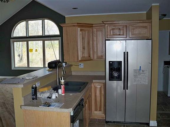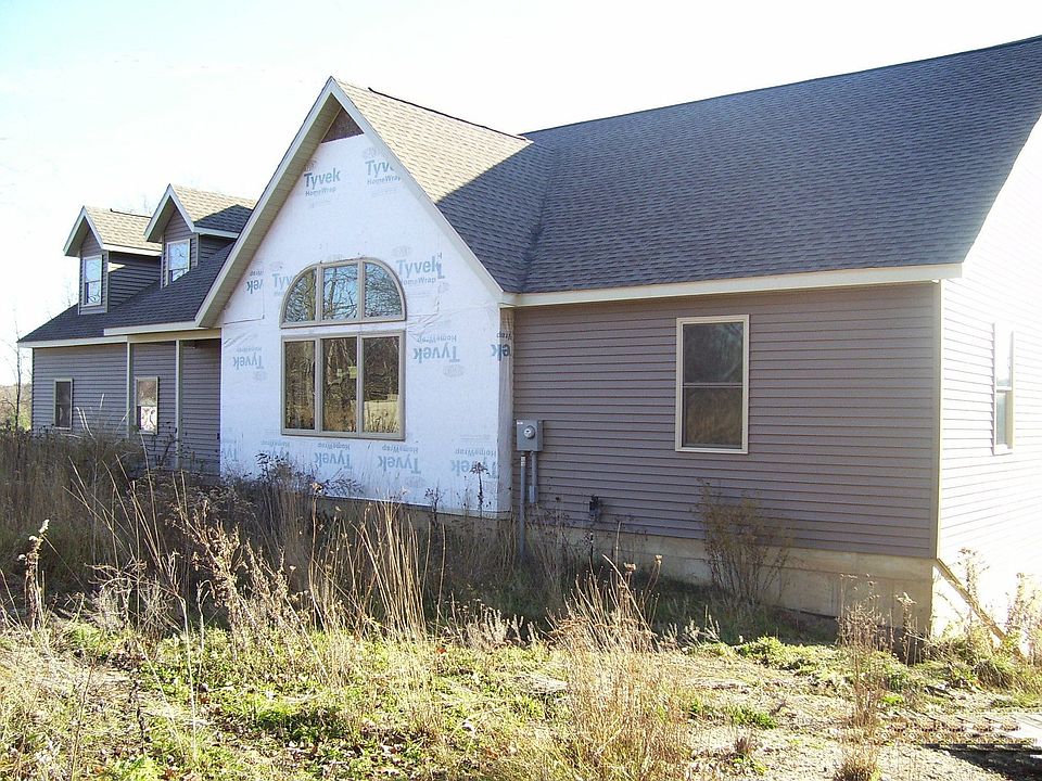 Never been ocupied house with a gorgeous hickory kitchen and breakfast bar. Hardwood floors. 2-3 bedrooms. 2 full baths. Bonus room possible above the garage. Walkout lower level is ready for completion. Sits on over 2 and 1/2 acres.