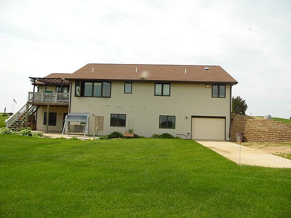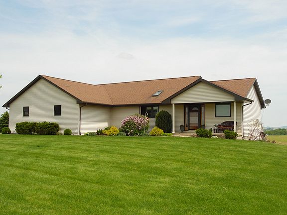 Ranch style Country Living in this 3 bedroom home built in 2005 with all the best features. 2 X 6 Construction, In-floor heat in the lower level & the master bathroom, drain tile inside & outside of foundation, radon piping installed, attached 2 car garage plus bonus 3rd car garage underneath, Master on the main level has a LARGE walk in shower with bench seat & double shower heads, whirlpool tub & double lav. His & Hers walk in closets & it's own sitting area. Laundry with mop sink located just outside the master, along with an Office room that overlooks the Panoramic, Distant, country views - magnificent! Sellers have installed solid surface counter tops in the kitchen, it has all the appliances included - including a 2nd fridge in the lower level 2nd kitchenette & an additional freezer. The main level kitchen has a walk in pantry, sliding drawers in the cabinets, a garbage disposal & a whole house water filtration system. Multiple lighting system in the kitchen is great for cooking, atmosphere lighting, & /or nightlights! Off the Dining Room is a sun room area that your plants will just adore! You can walk out onto the deck to enjoy the relaxation of the country & the views. Sellers are including the pergola on the deck to the new home Owners. Open floor plan on Main level is great for entertaining & the gas fireplace will warm the home right up! In the lower level you will find a Family room with a 2nd fireplace, the kitchenette, lots of storage space, 2 additional nice size bedrooms & a full bath. Down the hall is access to the 3rd garage. Lower level is a walk out to another patio. Backyard has a fire-pit & lots of room to play. Seller is offering the Buyer a 14 month Home Warranty at closing as well! It's a great home, for a great price. Call today to schedule your showing.