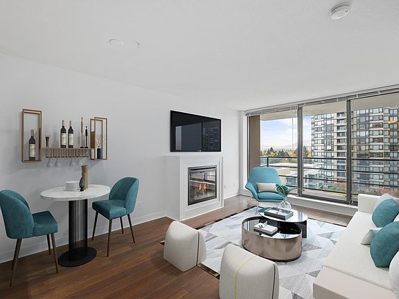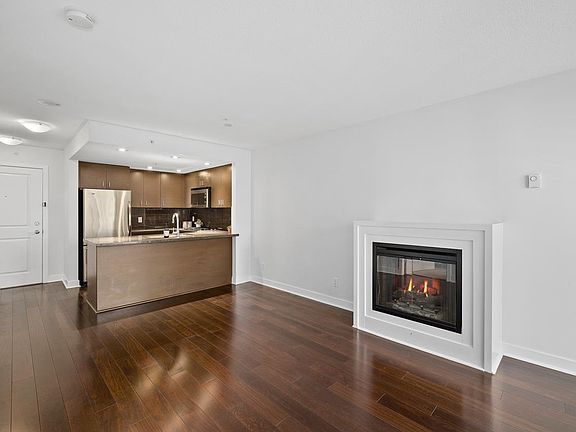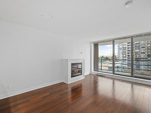 THE PERFECT LAYOUT at the perfect price! This beautiful upper floor 1 bedroom + spacious DEN offers an open concept lifestyle with a FULL LENGTH 112-SQFT BALCONY & panoramic VIEWS. Functional kitchen featuring granite countertops and backsplash, S/S appliances including BOSCH gas cooktop, oven and dishwasher. Gorgeous hardwood floors in both the living and dining area. The functional den is the perfect home office, or can even fit a single bed for guests. You'll love the cozy feature fireplace for nights in. Direct access from building to Garden City Park with beautiful lake and picnic area - PARKSIDE living at its best! Fantastic building with gym, visitor parking, rentals allowed. Comes with one parking stall. First showings Thurs 5-7pm & Sat/Sun 1-4pm open house.