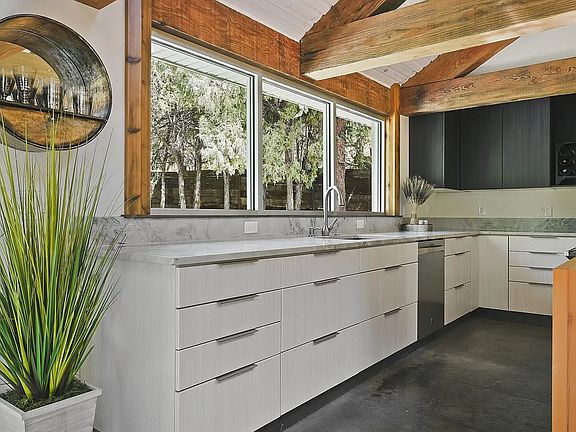 Stunning home on secluded property with unique and open layout: 9188 S Turkey Creek is a perfect blend of mountain living and modern amenities. Its also a noteworthy architectural gem in the area; meticulously designed and crafted with beautiful custom and out of the ordinary details. South Turkey Creek runs directly through the lush and fully landscaped property. Feel like you are deep in the woods while being only 8 minutes from Conifer restaurants and grocery stores and only 30 minutes from downtown Denver. This fully furnished home is comprised of two wings. The west is an open layout with modern kitchen with updated appliances and huge pantry, large living room with garage door for indoor / outdoor living, large windows with views of the wooded hillside, vaulted ceilings and a stone fireplace perfect for entertaining or curling up fireside on a snowy winters night. There is also a small bathroom and loft area with built in queen bed, great for extra guests. The east wing of the house is comprised of a primary bed / bath / walk in closet with the creek just 10 feet away, 2 guest bedrooms, a 2nd full bath, an office with a view of the courtyard and a mudroom leading to the oversized 3 car garage. Outside the primary bedroom is a terrace overlooking the creek with a large hot tub. Another expansive patio wraps around the west of the house, and multiple foot bridges take you across the creek to a large stamped concrete patio with fire pit. Access to the home through a large paved driveway with private gate, or over a separate bridge and driveway through the pasture in the back. Large windows, Modern fixtures and appliances, radiant heat and ample power throughout. The property also has a green house, chicken coop / run and is water independent for those who appreciate a more off grid lifestyle. Owner pays for Trash service and septic, tenant responsible for electricity, gas and internet as well as yard maintenance and winterization. A maximum of 2 pets (dogs) allowed. Property equipped with riding mower, snow blower and log splitter.
