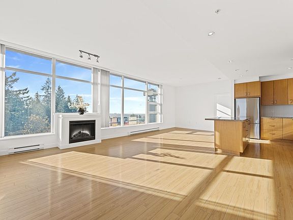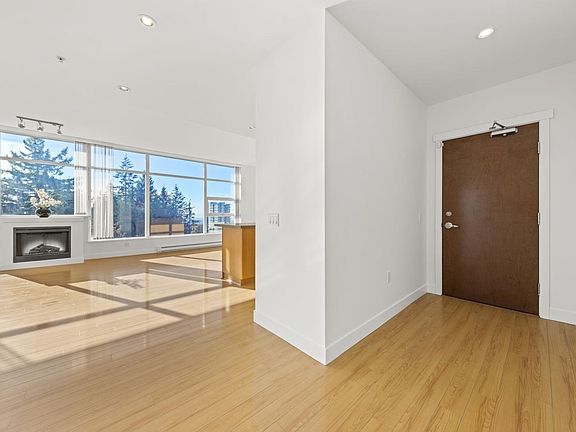 Welcome to ALTAIRE at UniverCity, the award-winning community at SFU. This stunning renovated 2 bed + den, 2 bath Penthouse sits atop of Burnaby Mountain with stunning 270 degree city, mountain and water views! This home boasts expansive windows creating a spacious & bright feel throughout. Features include an open concept kitchen, living & dining area, brand new kitchen appliances, hardwood floors, granite counters, fireplace, & walk-in closet off the primary bedroom. Enjoy the beautiful views from the large balcony, large enough for a BBQ & entertaining. Complete with 2 parking stalls, 1 bike locker, visitor parking & EV charging/car wash station! Steps from transit, this unit is a MUST-SEE!