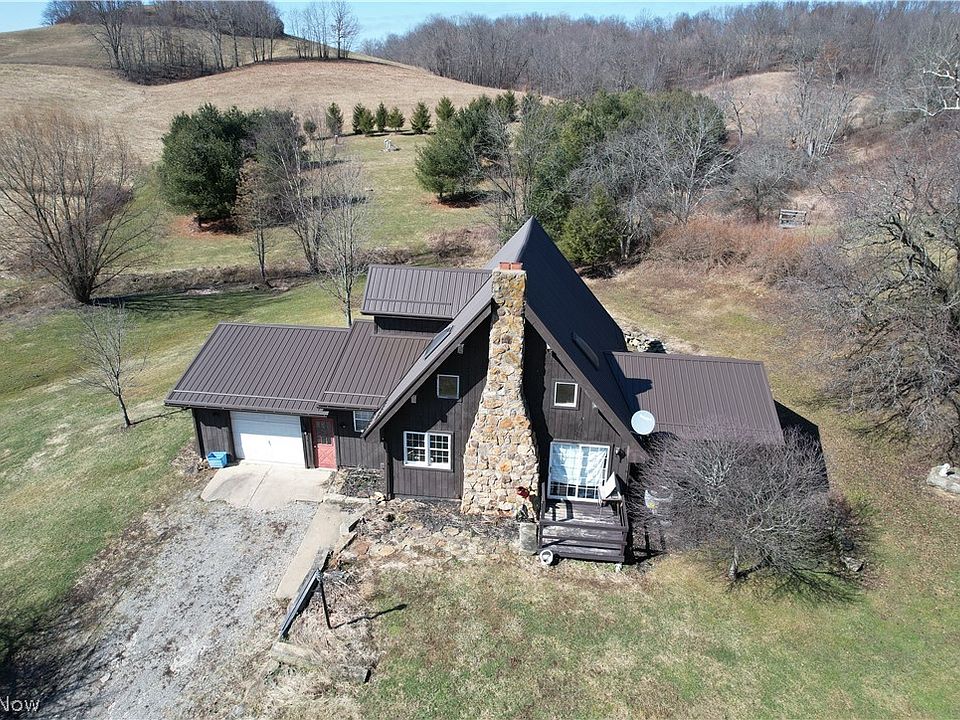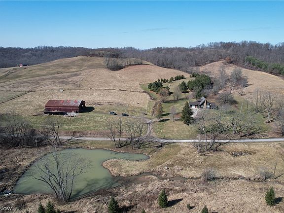Wonderful country home on 30+ acres! Custom wood sided A - frame style house with 4 bedrooms and 3 baths. Newer flooring, tasteful design, new metal roof, brand new heat pump and furnace! The master suite is on the first floor, complete with a walk in shower, large bathtub, and walkout sliding doors to the back deck. There are also 2 additional bedrooms on the main floor and the laundry! Upstairs is a small loft area, a full bath and a large bedroom. The upstairs bedroom has a walkout balcony deck, off of the back of the house with amazing views of the countryside. The property is mostly rolling fields with some trees in the middle and along the lines. There is a large pole building (50x90) that would be great storage or could be for horses or livestock with some TLC. There is fencing around the barn and a large spring fed trough as well. Across the road is an additional parcel that has a wonderful scenic pond. This property has so much to offer at a great value! The seller owns 50% of