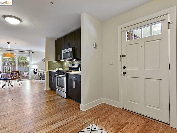 Spacious and light-filled 2 bedroom, 1 bath condominium on the Emeryville border. Recently updated chef's kitchen. Microwave is also a Convection oven. Newly installed Eucalyptus flooring and mostly freshly painted. The open floor plan invites indoor/outdoor living with the magical, private south-facing backyard with an olive tree, a fig tree and other flora and fauna. In unit laundry. Large storage unit in back of condo. Two off-street parking spaces. Close to MacArthur BART, Temescal, and Emeryville. Open Sunday November 10 and Sunday November 17, 2:00-4:30 PM.