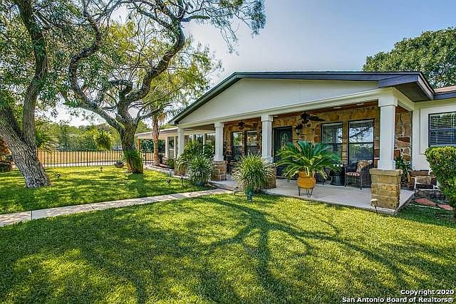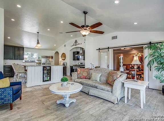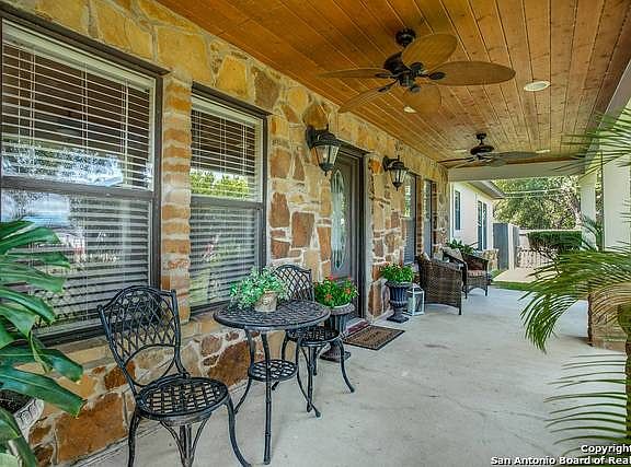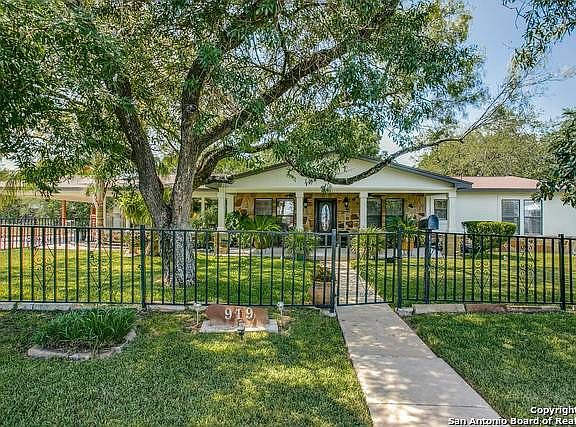 Escape to this private Terrell Hills oasis! Enjoy island breezes on the front & back porches amidst tropical plantings. Relax around the HUGE island kitchen, featuring vaulted ceilings and gas cooking. Unique architectural ceilings throughout the house! Two living areas (including a family room with gas fireplace) and separate dining room create a casual flow. Oversized Master bedroom, spacious closets and fully-fenced yards check every box. Recent upgrades include double pane windows, new electrical & plumbing. Live 1 mile from JBSA-Ft Sam while enjoying the amenities of private city services!