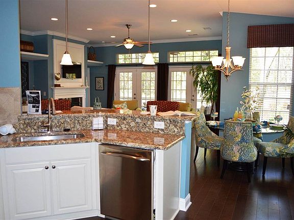 Eaton floor plan backing to trees with 2' extension in BR #2, 4' extension in garage, granite counter tops, stainless steel appliances, separate soaking tub and shower in the MBA, 36" staggered cabinetry in kitchen, covered lanai, front porch, tray ceiling in th efoyer and MBR, spacious open floor plan and great room. fireplace, and more!! Pictures are of furnished model. This one is a real beauty and backs to trees! Pictures are of a furnished model (not this house).
