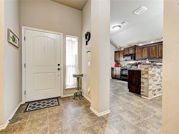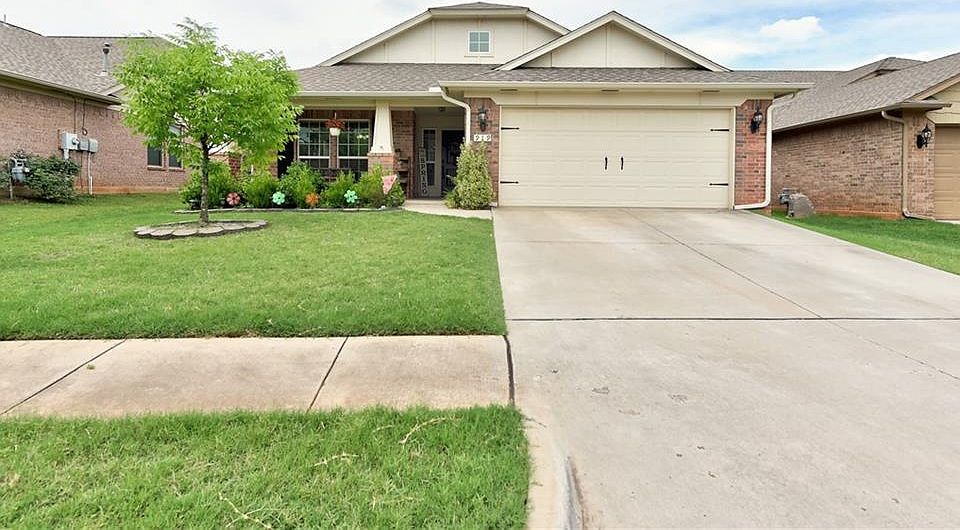 This beautifully maintained Ideal home is located in Greenleaf Trails! You're going to love this north Norman neighborhood featuring a community pond, walking trail, picnic pavilion, and splash pad. Its convenient location is minutes from I-35 and HWY 77 making it a breeze to commute to Tinker or the greater OKC metro. The 3 bed/2 bath home offers a large covered front porch and a welcoming open kitchen/living/dining area perfect for entertaining. If you are looking for a home with large bedrooms, look no further!! The master bedroom has an on suite bathroom featuring double vanities and separate tub and shower. The other 2 bedrooms are nice sized with large closets. The fenced back yard and covered back patio offer a great place to relax and barbecue with friends and family. The storage building, playhouse and swing set stay! Home includes in-ground storm shelter, 2 car garage, security system and lots of storage space. Move in ready!! This one won't last long.