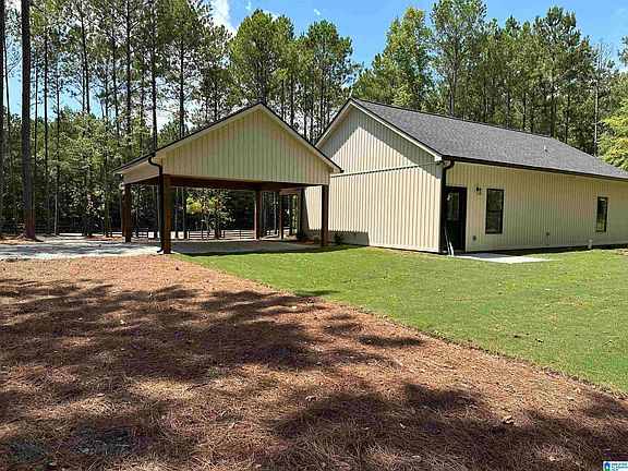 Sitting back in the pines just outside the City Limits of Roanoke is this brand new construction. Five minutes or less to most stores, schools, restaurants and businesses. There are 4 wooded acres to give all the privacy needed but still be close to town. Pull through the gate and wind through the pines and park under a detached carport completely covered to your front porch. The front door opens to the great room where you'll notice the electric fireplace and shiplap. The butcherblock countertops throughout the home absolutely are set off by the flooring that has the rustic pine look. Stainless appliances in place make this new home move in ready. The yard has been landscaped front and back with new sod and foundation plantings. If you enjoy the wildlife and country, have coffee on the back patio and watch the deer and birds. Plenty of room also if the kids need areas to explore or ride bikes and side by sides.Large timber with trails go to the back of the property to walk and enjoy.