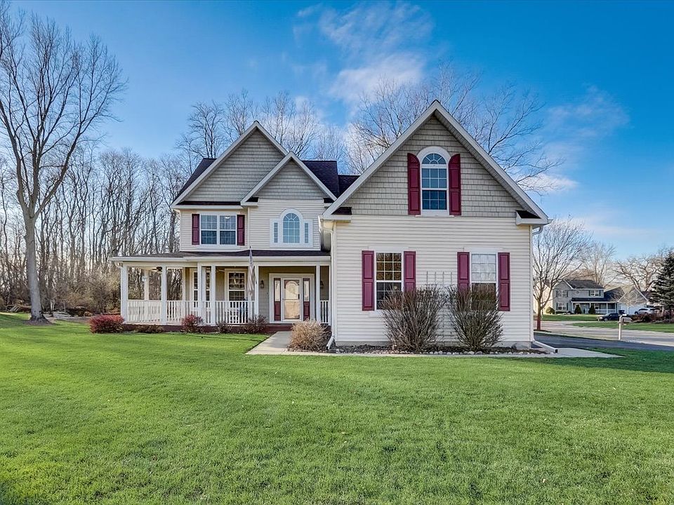 Gorgeous wrap around porch exudes southern charm, fully equipped w/ceiling fans & space for your rocking chair to enjoy beautiful summer days soon to return! Located on a corner lot (.45 acres) in Woodland Meadows, this 4bdrm home boasts lots of living space (2941 sq ft finished) & updates. Main level has sprawling hickory floors throughout (2018), laundry & powder room. Sunken living room w/double sided gas fireplace & custom shiplap surround. Spacious kitchen & dining area, Corian counter tops w/maple cabinets/crown molding, large island workspace & under, above & showcase cabinet lighting. Den/Office is a great flex space (playroom, formal dining room options.) Master suite features a HUGE bonus room. Roof/gutters (tear off) 2015. Furnace & AC 2018. Option to buy 1.66 acres to the West
