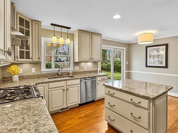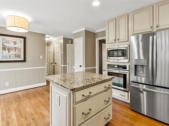 Elegant HAMILTON FOREST home on fenced lot in peaceful, well-maintained neighborhood. Abundant natural light streams through insulated windows to gleaming hardwood floors. Main-level bedroom with full bath and 3 bedrooms on 2nd floor. Gourmet kitchen with granite countertops, island, vent hood, stainless steel appliances and NEW oven. Designer lighting and gas log fireplace in den. Spacious primary suite with 3 closets. Freshly painted exterior, NEW HardiePlank siding, covered rocking chair porch and NEW heat pump on main level. Expansive, floored attic and attached carport storage provide space for everything. Mature trees offer a serene feel, great for relaxing, entertaining and outdoor dining on the slate patio. Refrigerator remains. Hamilton Forest is known for friendly community, wooded surroundings and easy access to parks and Hamilton Lakes. The perfect balance between convenient location and natural beauty. **See VIRTUAL TOUR; floor plan in photos** Come see your new home!