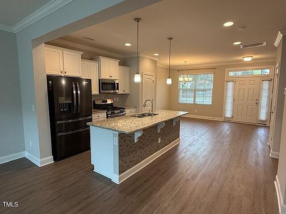 Awesome location! This townhouse is in desirable downtown Wake Forest. Light, bright open floor plan. Gourmet kitchen complete with granite counter tops, huge island and gas range. Custom bookcases surround the fireplace in the beautiful family room. spacious bedrooms and tiled bathrooms. Tons of storage in the large walk in closets. Walk to downtown for dining, shopping, events and festivals. You can't beat the location or this gorgeous townhouse! Wait til you see