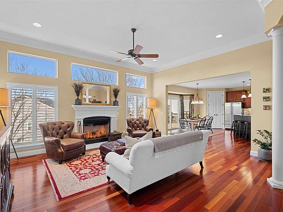 Immaculately maintained brick & stone front ranch w/3-car garage & walk-out finished lower level. Soaring 11'/9' ceilings & rich hardwood floors on the main level, including the open dining room & great room w/gas fireplace. Well-appointed kitchen features JennAir high-end appliances, w/gas range & refrigerator, which stays. Granite counters & glass tile backsplash sparkle from undercabinet lighting. Lovely primary suite w/trey ceiling, walk-in closet, bay window covered by plantation shutters & private bath w/separate vanities, corner tub & seated tile shower. Invite friends to hang out in the beautiful rec room w/9' pour walls, custom wet bar & stained concrete floors. Private LL bed & full bath teens or visiting guests will appreciate. Relax outdoors on the composite deck & patio overlooking the irrigated yard. Located on a private cul-de-sac street close to the abundance of amenities in Cottleville/St Peters. Francis Howell (Central High) Schools. Outstanding home! See it today!
