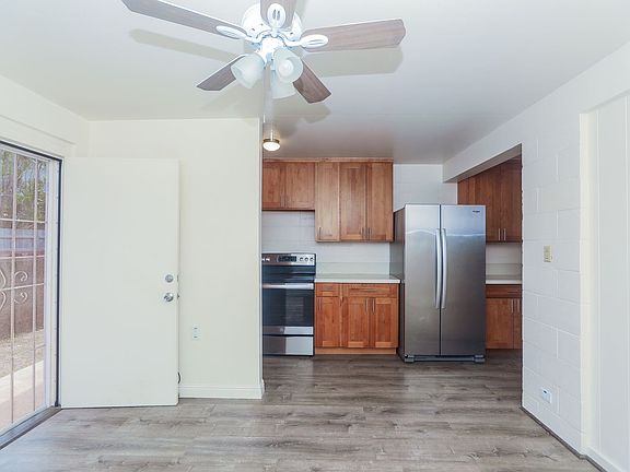 Ground floor single level unit near Stadium Park. Renovations include luxury vinyl plan flooring throughout, ceiling fan and light fixture along with window air conditioner in living room. Kitchen has upgraded cabinets with quartz countertops. Bedroom also has a ceiling fan with light fixture in addition to a window air conditioner. Appliances include: double door stainless steel refrigerator, electric range (glass top) with oven and stack washer dryer on outside patio area. One parking stall.