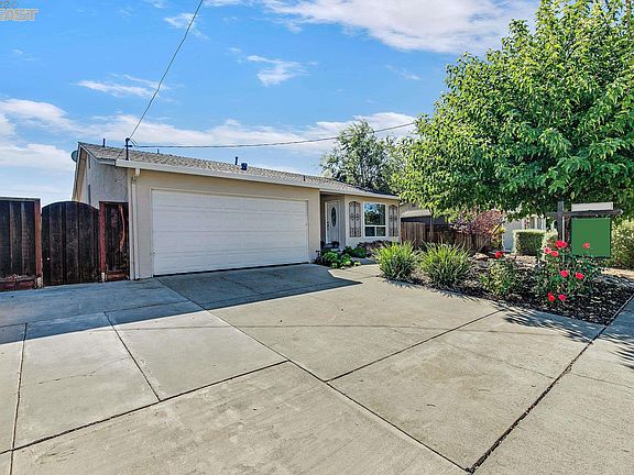 Charming north-facing Sunset West home! This comfortably appealing floor plan reveals a spacious living room and dining area brightened by large picture windows and natural sunlight at the front of the home and bed/baths along the back side of the home. The dining area also offers exterior access and additional bar seating. Recently refreshed, the kitchen showcases luxury vinyl plank flooring, white cabinets, stainless steel appliances, a spacious walk-in pantry, and eat-in area. Attractive and durable laminate flooring accents the living areas, bedrooms are carpeted, and baths feature tile flooring. Recently renewed baths include a stall shower in the primary bath and shower/tub in the secondary bath. Ceiling fans, built-in bedroom armoires, updated plumbing and electrical, dual pane windows, and newer AC offer additional value. Overall low maintenance and water conscious landscape design boasts ample hardscape including a large patio/cover/ceiling fan/lighting for optimum functionality. Full concrete side yard allows for possible side yard access. Huge plus? Interior access from the garage. Not an easy find in this neighborhood! Easy access to Hwy 84/580 Fwy. Close to Livermore's desirable schools, downtown shopping/restaurants, wineries, and trails. O/H: Sat-11-12 1PM to 4PM.