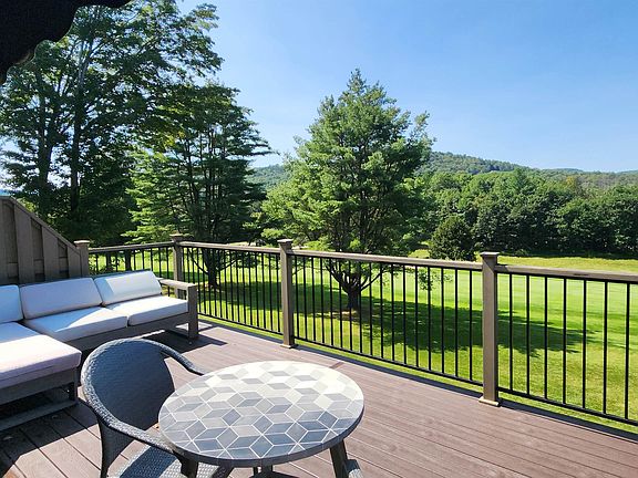 Enjoy stunning views of the golf course, hillsides, and ski area from the main living area and deck of this amazing three bedroom, four bath townhome. Perched on the hillside above the third and fourth fairway the Highland Golf Course and within walking or golf cart distance of the Quechee Club, Lake Pinneo providing easy access to all of Quechee’s amenities. Included in the sale are two sheds that can be used for golf carts or storage. The townhome is part of the Greensway Condominium Village which is comprised of twelve townhomes. The main floor is an open space concept design with the kitchen, living dining room with a half bath and wood burning fireplace. The primary bedroom has an adjoining screened deck and patio with an en suite bathroom with a steam shower. The second bedroom also has a full bath with jetted tub and a sauna. The third loft bedroom has an en suite half bath. The home has in wall air-conditioning on the main floor and in the loft, and the two lower bedrooms are naturally cooled. The home is being sold fully furnished with limited exceptions. Excellent renting history!