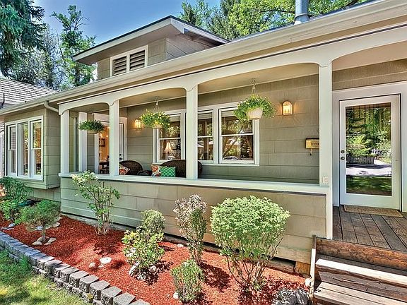 A charming Craftsman set on a beautifully landscaped corner lot in a well established North End neighborhood. Expansive front porch provides classic charm and invites guests into a fabulously upgraded interior! Hardwood floors expand from room to room, creating a seamless flow between dining and living spaces. Walls of windows brighten the interior with abundant natural light while framing the gorgeous outdoor setting. Spacious updated kitchen features sleek black appliances contrasted with stylish white cabinetry. Both living and family rooms are warmed by a fireplace. The main-level hosts three bedrooms and bath. A spiral staircase leads to a private master suite with wood stove, wonderfully upgraded bath, and bonus area. The family room provides multiple access ways to the enchanting backyard setting. Paver patio and two wood decks (one with hot tub) present the perfect opportunity for entertaining or enjoying the serene setting. Garden-like grounds feature lush greenery, seasonal creek, and plenty of shade. Large detached 2 car garage + storage shed.