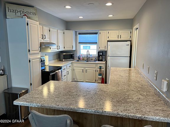 Charming bungalow with lots to offer! Located near the Ralph Engelstad Arena & a short distance to the campus of UND & the new medical school building. Nice updates that include professionally painted kitchen cabinets along with new added cabinets, fresh paint, flooring and privacy fence to the rear. The garage large and finished! Act fast before someone else does!