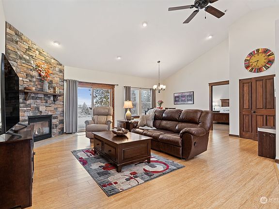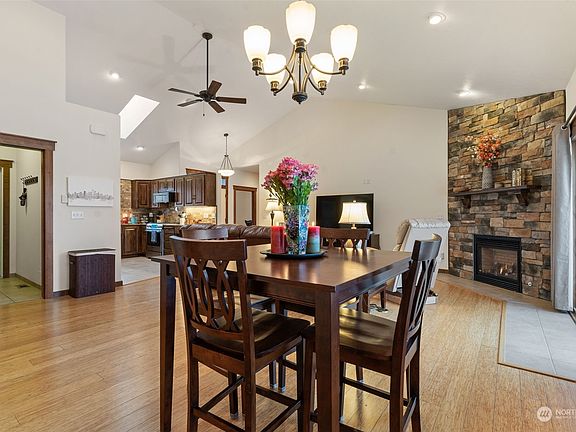 Deer Park Golf & Country Club Zero-Step Rancher. Low-rate assumable VA loan is available to eligible veterans! This 4 bdrm, 3 bth home features 2 primary bdrms that can be used as individual retreats or multi-generational living. Bathrooms incl stone top vanities, tile wainscoting/bathing areas, & tile floors. Great Room features a vaulted ceiling & stone fireplace. Kitchen showcases custom cabinetry, updated appliances, stone tops, tile backsplashes & flooring, walk-in pantry, and a skylight. Beautiful alder millwork, hardwood floors, 90% gas heating, & central A/C. Garage pull-down stairway to attic storage area. ADA features incl accessible cabinetry, bathroom grab rails, & a roll-in shower. Golf course access is just across the street!