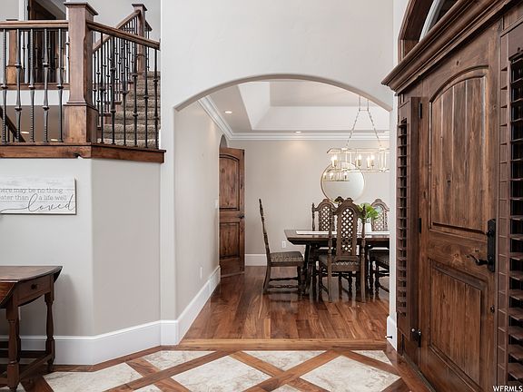*** MULTIPLE OFFERS RECEIVED*** FANTASTIC HOME on a quiet street close to everything - Costco, Lowes, Walmart, Macey's grocery, I-15, technology companies, parks, schools, healthcare. You can't beat the location of this home - tucked away on a quiet street, yet close to all shopping, you have the best of both worlds plus unobstructed views of Mt. Timpanogos from the front porch. This was a model home for the builder and everything in this stately home is high quality and made with superb craftsmanship. UPDATED WHITE KITCHEN boasts granite countertops, double ovens, stainless steel appliances, 6-burner gas range top, pull out drawers and spice racks, water filtration system, and bay windows in the kitchen nook. OPEN CONCEPT FAMILY ROOM with 18' vaulted ceilings and oversized windows is full of light and makes the perfect gathering space for family and friends. Cozy up to the fireplace and read a book or watch a favorite show. Built-in entertainment center is included in the sale. TWO FRONT ROOMS can be used as a formal dining room and a home office. The views of Mt. Timpanogos are spectacular from both rooms. REAL HARDWOOD FLOORS throughout the main floor are in great shape. MASTER SUITE on the main floor boasts bay windows, French doors, double vanities, jetted tub, and a large shower. You will love the MIL apartment in the basement that has its own entrance and comes equipped with a full kitchen, full bath, 3 bedrooms, plenty of storage and an option for a second bathroom. FLAT BACKYARD with tons of usable space is fully landscaped and shaded by large trees. All appliances in both kitchens are included in the sale. Don't miss this one! Call today for a private showing!