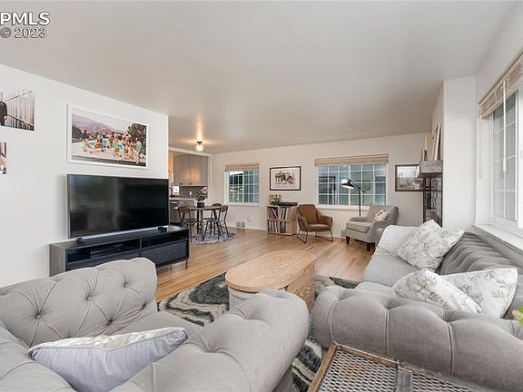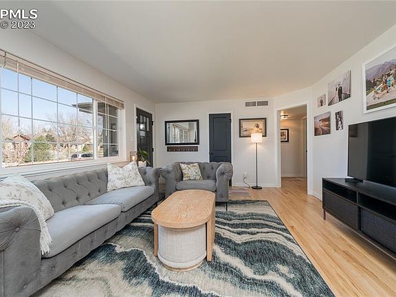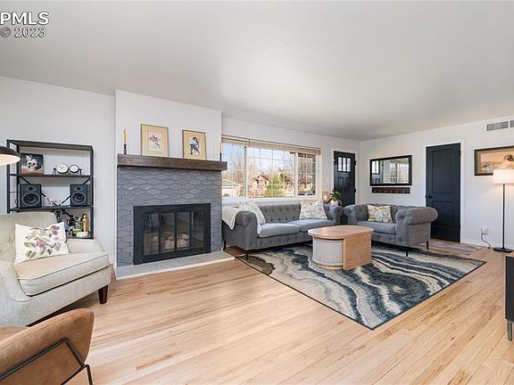 What a fun home! This updated ranch has 3 bedrooms, 2.5 baths with a 1 car garage and 1 carport.The open living room has a large window with views of Pikes Peak, natural stained hardwoods, updated paint as well as a gas fireplace with a tile surround. The living room opens to the eating area and kitchen creating an awesome great room feel.. Updated cabinets, quartz countertops, farm sink, stainless steel appliances as well as a walk out to the back patio, make this a perfect area for entertaining. The primary suite has an updated full bath with double vanities and updated tile. Two additional bedrooms share an updated ¾ bath with updated vanity and tile. There is a ½ bath located off the laundry. The large newly fenced backyard has a sprinkler system, a privacy screen at the back patio, and a shed. Additional Features: Newer furnace, air conditioning, vinyl windows. This home is located in Divine Redeemer, close to trails and downtown, and is close to the Olympic Center.