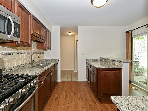 Beautiful ranch-style living overlooking pond and mature trees in desirable Hidden Lake Village! This unit features a gorgeously updated kitchen including granite, cabinetry, newer appliances, island with breakfast bar, and two pantries; very spacious living room and formal dining room; master bedroom ensuite; freshly painted; covered deck for entertaining or just relaxing; attached garage; separate laundry room. Sought after school district; close to shopping, metra, and easy access to I-94. This is ready to go and will not last long....See it today!!!
