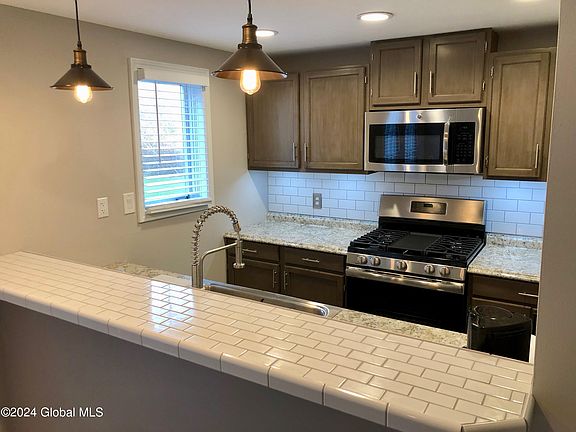 Embrace modern living in this remodeled two-bedroom townhouse located in Lewiston, NY. It features an espresso-stained custom wood staircase, newer carpeting, and tile flooring. The kitchen boasts industrial accents with new stainless steel appliances, including a gas stove, microwave, refrigerator with ice and water dispensers, and a quiet dishwasher. Custom barn wood and solid core doors are featured throughout. Enjoy the deck overlooking a green space, off-street parking, and custom touches throughout the home. There is a new gas furnace, a tankless hot water heater, and a mini-split heat pump for AC. Located near Lewiston-Porter schools, town parks, and just 4 miles from Lewiston village—this home is ideal for first-time homeowners or busy professionals seeking low-maintenance living.