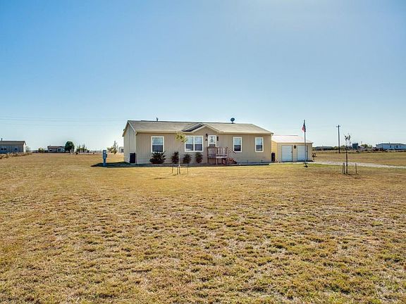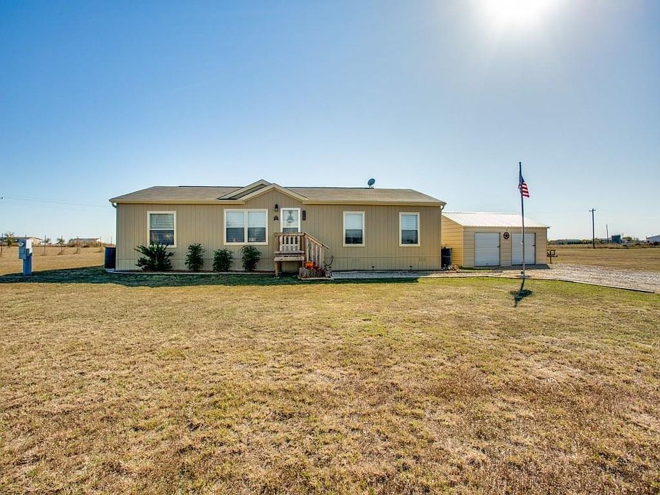 Great opportunity to enjoy country living with this 2 year old home sitting on rectangular 1.5 acre lot featuring 3 bedrooms, separate office, 2 full baths, and more. Tons of extras with this like new home including full appliance package with built in microwave, oven, dishwasher, refrigerator, and washer&dryer, a riding lawn mower, 12x10 shop with electricity, additional detached garage-storage building and a full gutter package. Just minutes from Rhome and close enough to many local attractions and shopping. Great opportunity to own for a great price!