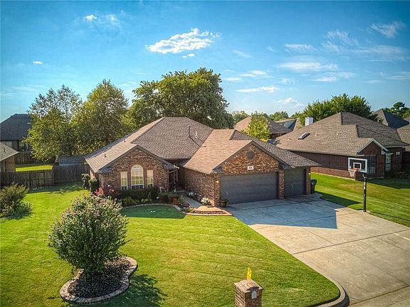Move-in ready home in Soldier Creek/Carl Albert Schools. This home has a very well designed floor plan with 1,841 sq. ft., 4 bedrooms, 2 bathrooms & a 3 car garage. Features include a large living room, fireplace, dedicated dining area, & spacious kitchen, recently updated flooring and paint, lots natural light, good sized bedrooms, master suite with soaking tub, walk-in shower, and massive closet, large fenced backyard with great shade and patio, garden shed, upgraded class IV shingle, HVAC was replaced about 3 years ago, and lots more features and upgrades. Located close to shopping, dining, parks, movie theater, highway access, Tinker AFB, Boeing, Rose State College, and other great community amenities. Call today for a private showing.