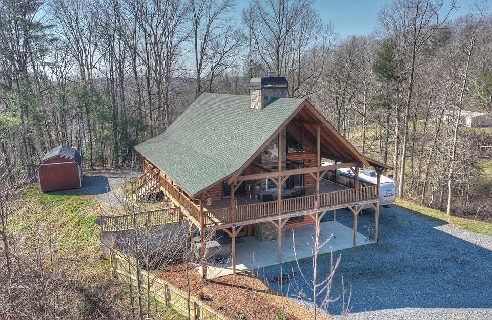 Lodge Style Satterwhite Log Home perfectly situated on 15+ acres. Beautiful vineyard/pasture views from home & mountain views from top of property. 2 car detached garage, RV hookup, 16x30 barn. This 3BR/3.5BA features soaring vaulted ceiling, exposed beams, wood burning fireplace; well appointed kitchen, farmers copper sink, wine cooler & more. Master suite & laundry on main; Upper level guest suite; Terrace level has family room, gas fireplace, BR, full bath, flex room (option for 4th BR). You will love the oversize covered porch w/outdoor fireplace; hot tub, firepit area, outdoor lighting, professional landscaping; generator, HI SPEED Internet. 2 to 3 acres have 3 yr old grape VINES; property already approved for vineyard & future tasting room. Buyer can keep the vines or convert to pasture. So many Opportunities for this special property! Must see list of special features!