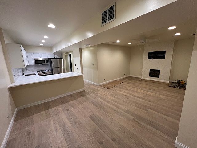 Newly renovated 3 bedroom/ 2 bath. New stainless appliances. Open concept kitchen/dining/living . Central heat and air. In Med Center UIC area. Near Red/blue train and bus 17 Owner pays for water. Renter is responsible for gas, electric and cable. Non-smoking building. No pets. 3 people maximum.
