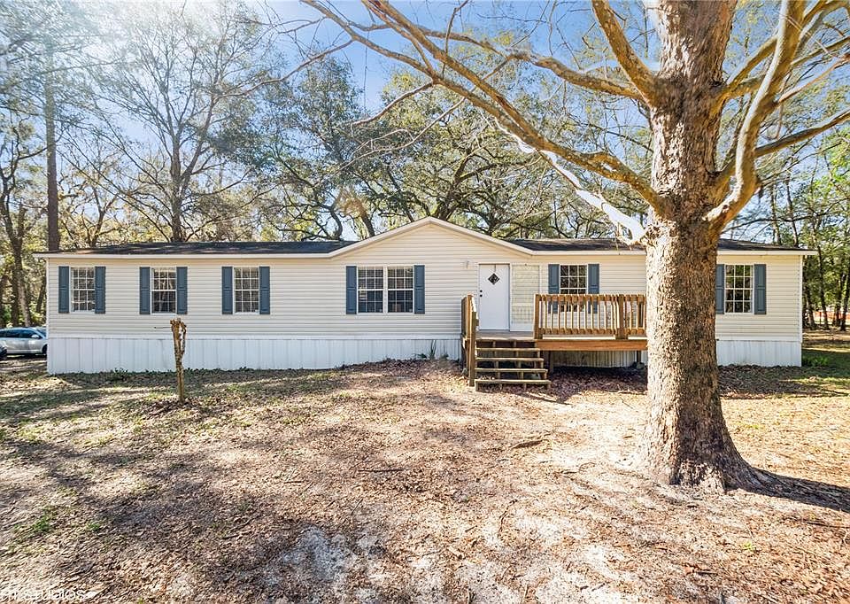 Looking for privacy, space, and updates? Look no further. This 4 bedroom, 2 bath mobile home has it all! Situated on the back half of a gorgeous 5-acre lot with granddaddy oak trees speckled throughout, an abundance of wildlife, and only a 1/2 mile from Trenton. Inside you’ll find cathedral ceilings, laminate wood floors, fresh paint, and an open-concept living area with two living rooms, a fireplace, and a huge kitchen with freshly painted cabinets and a gas range! The primary bedroom is massive and has a walk-in closet and a luxury bathroom with dual vanities, a garden tub, and a walk-in shower. All three guest rooms are on the other side of the home and share an updated bathroom. Enjoy the peace and quiet on the front or back wood decks, and store the toys and equipment in the large shed. If all that wasn’t enough, the sellers are offering a $2,000 credit to replace the carpets, the roof will be replaced before closing, and the air conditioning unit is only 2 months old.
