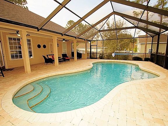 Spectacular home, screened-in pool w/large Lanai & pavers, 4 BR/3 BA Split-plan + office, 2300 SF, Built 2002, 4-Car Garage on 1 acre lot, Family room w/gas fireplace & built-in entertainment center, Gourmet kitchen w/stainless steel appliances, breakfast nook & skylight. Formal dining room w/lit tray ceiling. Spacious master suite w/walk-in closet & lit tray ceiling. Jetted tub & separate shower in luxury master bath. High ceilings. Arched entryways. Crown molding. 9 paddle fans. Secu rity system. Lots of windows. Inside laundry room. Side-entrance double garage, plus detached double garage w/second laundry area. Hardiboard exterior. Landscaped w/sprinkler system. Fenced pet friendly yard.