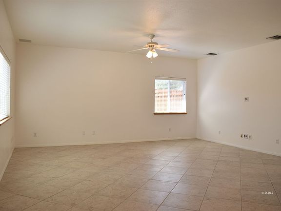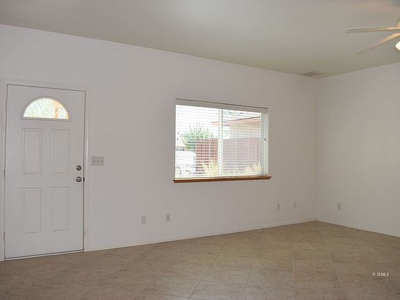 This 1344 sq ft 3 bedroom, 1.75 bathroom home has been well cared for. Xeriscape front yard. 18 " Tiled floors flow from entry into the living, dining and kitchen. Dining area is open to kitchen and living room. Kitchen offers solid surface counters, breakfast bar and window sink. Full guest bathroom has raised vanity and fiberglass shower surround. Office/bedroom 3 has dark wood laminate flooring and lighted ceiling fan. Bedroom 2 is carpeted with a walk-in closet and lighted ceiling fan. Master bedroom has walk-in closet with built in shelving and lighted ceiling fan. The attached master bathroom features tiled shower w/rain glass door, fiberglass pan and 18" tile flooring. Home is equipped with additional Ethernet, phone outlets and is wired for home security system. Rear yard offers covered and uncovered patio area, 6'x8' Shed, grass, mature trees, plants and side yard with planter bed. Evap cooler is ground mounted.