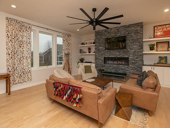 Feel the warmth the minute you drive up to this 2-story walkout located on a cul-de-sac in Somerby Golf Community. This home offers 5 bedrooms, 4 baths and main floor office. Amazing natural light flows through this home. The main floor has a great open floor plan with eat-in kitchen, walk-in pantry, great prep island that flows into great gathering space in the dining and living room with cozy gas stone fireplace and built-ins. There is a front office with double doors, 1/2 bath and built-ins at welcoming entry. The open staircase takes you to privacy of the primary bedroom showing walk-in closet, soaking tub and tiled walk-in shower. There are 2 other bedrooms, full bath and laundry room. The lower level walkout has great family room space, 2 additional bedrooms, one used as an exercise room, & full bath. Enjoy all the season skies on the back deck, along with all the amenities and activities Somerby has to offer!