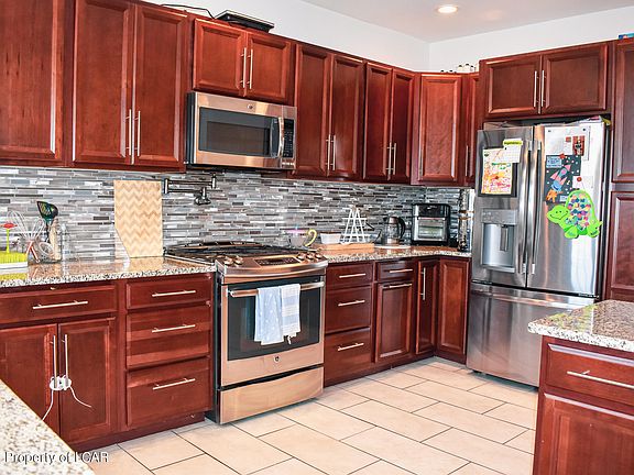 West Pittston STUNNER! 4 bed, 2 1/2 bath, Garage and yard. Modern kitchen w/granite countertops, T shaped island and SS appliances. Open FL plan. Lg Rooms ,HW floors, central air w/ gorgeous wood moldings and doors. Plenty of storage in the walk up attic, basement and detached garage. Nice area to enjoy meeting your new neighbors on the large front porch, and it doesn't require flood insurance