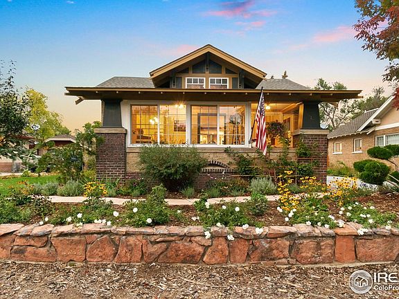 Bungalow Love in the Heart of Downtown LovelandDiscover timeless charm and modern luxury in this fully renovated 1928 double-brick bungalow, perfectly situated on Kings Corner in Loveland's sought-after historic district. Just steps from downtown dining, shopping, and entertainment, this home blends classic craftsmanship with today's most desirable updates.Inside, an open floor plan welcomes you with restored original floors, windows, trim, and custom built-ins that preserve the character of the era. The chef's kitchen features top-of-the-line appliances, spacious granite countertops, custom cabinetry, designer hardware, and a walk-in pantry. Brick accents are thoughtfully integrated throughout, creating a warm and inviting feel.This home offers 4 bedrooms, updated bathrooms, and a finished basement where even the original kitchen sink has been cleverly repurposed. A bright, skylit flex room addition provides the perfect space for a studio, office, or sunroom retreat.Outdoors, enjoy a beautifully landscaped yard with mature flower beds, a new sprinkler system, turf backyard, and a private patio. Additional updates include new A/C, modern electrical and plumbing, a detached garage, alley access, and a brand-new concrete driveway with ample parking.What truly sets this home apart is its one-of-a-kind location-offering stunning sunsets, mountain views, and open fields, all just moments from downtown Loveland's vibrant lifestyle.Historic charm meets modern living-don't miss your chance to call this downtown Loveland treasure, Home.