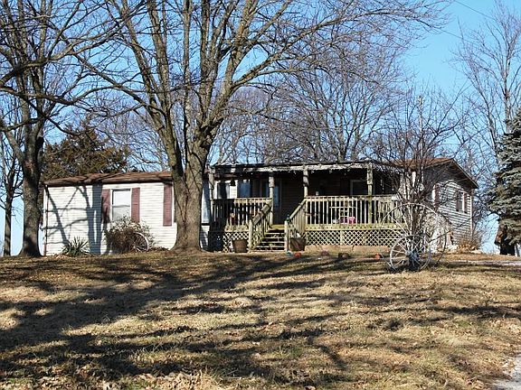 This is a nice modular home that sets on approx 5 acres m/l . Has a living room kitchen and utility room, 3 bedrooms, 2 full baths, one car detached garage +(second garage in need of repair) and pole barn and storage building, a large covered front porch/deck. Square footage is approximately 1248 sq ft finished living area. Enclosed sun porch and patio.