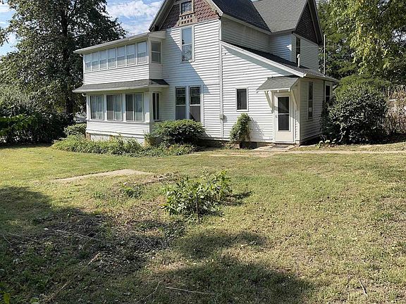 Take a look at this 1895 Victorian Beauty surrounded by trees and perennials! Very private secluded location. It has been renovated with TLC and brought back to life. The basement has been renewed with a new West wall. The East wall was replaced several years ago. Woodburning fireplace surround has been renewed. Fireplace is non-functional and blocked off. It is flanked with bookcases on each side. Plumbing has been replaced throughout the house. New furnace & hot water heater. Much of the originality of the home as possible has been maintained. The foyer has an open staircase leading to 3 bedrooms, a bathroom and a sleeping porch adjoining the front bedroom. Bedrooms have nice hardwood floors and large closets. There is an enclosed wrap-around front porch Many original stained-glass windows remain. Huge family room with 2 sets of French doors. 2-car detached garage has stairs to loft storage. Recently painted house. Anxious to show you this piece of History!