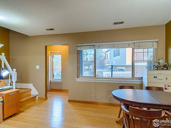 Primo location in the Tantra Lake community! Walk out to Boulder open space/Tantra Park from you private, fenced in yard with patio. The spacious floor plan of this end unit includes an open living & dining area with large windows to bring in lots of light. Wood burning stove to enjoy those Colorado wintry evenings. Large remodeled kitchen with lots of storage + bamboo flooring throughout most of the main level. Close to Tantra Lake/HOA community center which features an indoor pool, fitness center, clubhouse, tennis & basketball courts, playground, paved paths & Tantra Lake. Easy access to CU South trails, I-36, RTD bus routes, central Boulder & Table Mesa Shopping Center.
