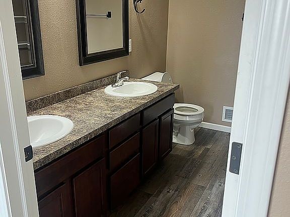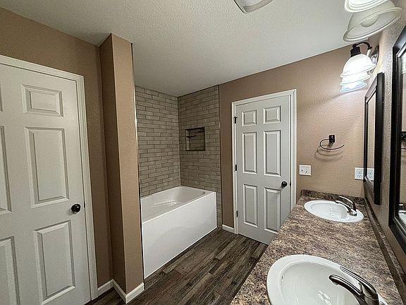- Large master bedroom with a large walk in closet and a full bath with double sinks and an oversized soaker tub.
