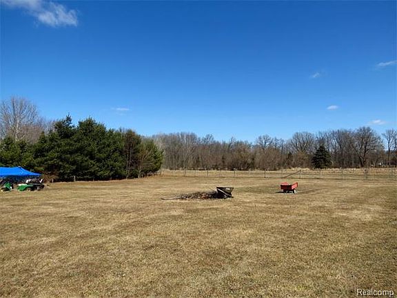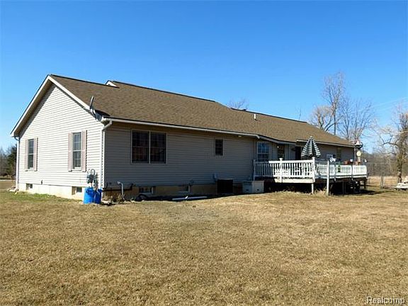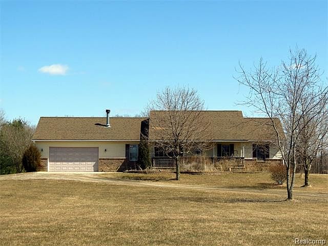 SPACIOUS RANCH STYLE HOME on gorgeous county setting recently converted to natural gas! Situated on over 2 acres offering insulated pole barn complete w/ cement floor, electricity, & lean-to for storage. Wood deck offers lovely views & perfect place for summer entertaining while covered front porch ideal spot for bench swing. Kitchen features ample cabinet & counter space, bay window, & ceramic tile flooring. Great room enhanced with natural fireplace & peaked ceiling. Master suite has elegant panned ceiling, walk-in closet & private bath featuring jetted tub & separate shower. Convenient first floor laundry. Tile floors in both baths. 9 ft ceilings in basement. Whole-house generator included. Salem Twp tax rates & South Lyon schools!