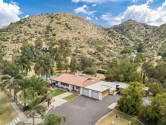 This beautiful 5-ACRE RURAL PROPERTY in coveted RECHE CANYON is situated within the northwestern foothills of the San Jacinto Mountains, offering RANCH-STYLE LIVING just minutes from downtown Redlands and Moreno Valley. The 3-bedroom home (one room being used as a den/office) was designed and built in 1980 by local architect/builder, Robert Van Roekel, and features MID-CENTURY style architecture with VAULTED ceilings and clerestory windows and was designed with an innovative passive solar and geo-thermal heating & cooling for maximum efficiency. This home won Van Roekel 1st Place in the State's Passive Solar Home contest for architects who competed all across the country. You'll enjoy BREATHTAKING VIEWS from every corner of this property...take a stroll along the many meandering paths that wind around this beautiful property...offering HORSE STABLES, a custom DOG KENNEL, TENNIS COURT and 20x40 SWIMMING POOL...features you'll enjoy within the privacy of your own GATED RANCH. There's an abundance of delicious CITRUS TREES, beautiful gardens and rows of towering eucalyptus trees that provide plenty of firewood for the winters. This is one of the most unique properties you'll find...so many fun amenities and a fascinating history. Included with this offering are two working tractors, firewood, and other useful materials to help maintain the property. The property includes wells, septic and leased solar panels.