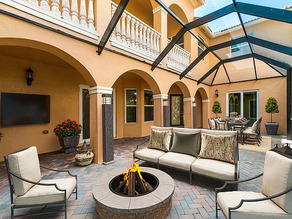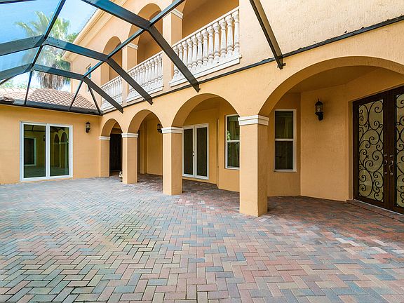 Spectacular Waterfront 5,000+ SF, Single Family Home with a Detached Guest House and a 2 car garage and IMPACT WINDOWS. This stunning home was clearly built with luxury in mind. Situated on the widest part of the lake this residence boasts a total of 6 bedrooms, 4 bathrooms, multiple balconies and a grand, screen enclosed courtyard and a guest suite complete with its own full bathroom, A/C system, walk-in-closet and its own private entrances. Step inside to discover a world of high-end finishes and attention to detail. You'll also appreciate the added safety and energy efficiency provided by the impact windows, making this home practical and beautiful. The smart floor plan flows seamlessly from the family room to the formal dining room on through to the butler's pantry and into the kitchen featuring top-of-the-line stainless steel appliances, custom cabinetry, ample storage and large cut granite countertops making it perfect for entertaining guests or cooking up a storm for the family. Beyond the dining room is the living room and all of this surrounds another true gem of this home; the large screen enclosed courtyard offering a private and tranquil oasis. The possibilities for this space are endless. Tucked away upstairs on its own wing, the private master suite is a true retreat, featuring a sitting room, a huge walk-in-closet with Custom Built-in California Closet systems, stunning views of the lake and an ensuite bathroom with split double sinks, vanity seating, a spacious shower and a luxurious soaking tub. This home features a total of six bedrooms; three additional bedrooms upstairs, one on the main level and the separate guest suite providing an abundance of space for family, work, recreation and guests. Don't miss your chance to own the ultimate in lakefront luxury living.